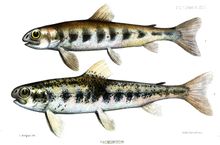 † 大西洋鲑属和太平洋鲑属也包含许多被称为鳟鱼的物种。 在大西洋鲑属中, 额外的小分类群被称为英语鲑鱼,即亚得里亚海鲑鱼(Salmo obtusirostris)和黑海鲑鱼(Salmo labrax)。 Steelhead Anadromous以虹鳟的溯河方式迁徙到海洋,但它并未被称为“鲑鱼”。.