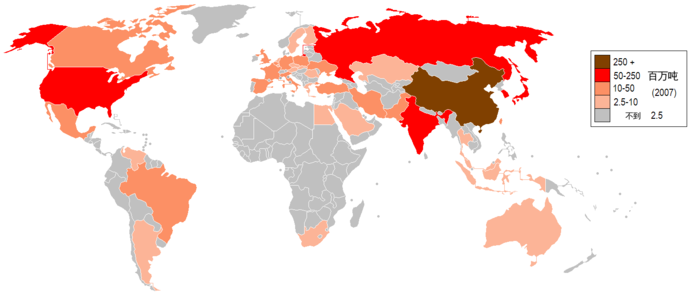 中国和印度的经济繁荣使其对钢铁的需求大幅增长。2000年至2005年间,世界钢铁需求增长了6%。自2000年以来,印度[51]和中国的几家钢铁公司崭露头角,如塔塔钢铁(2007年收购科氏集团)、宝钢集团和沙钢集团。截止2017年,安赛乐米塔尔是全球最大的钢铁生产商。[52]2005年,英国地质调查局宣称中国是世界上最大的钢铁生产国,约占世界份额的三分之一;日本、俄罗斯和美国分别紧随其后。[53]