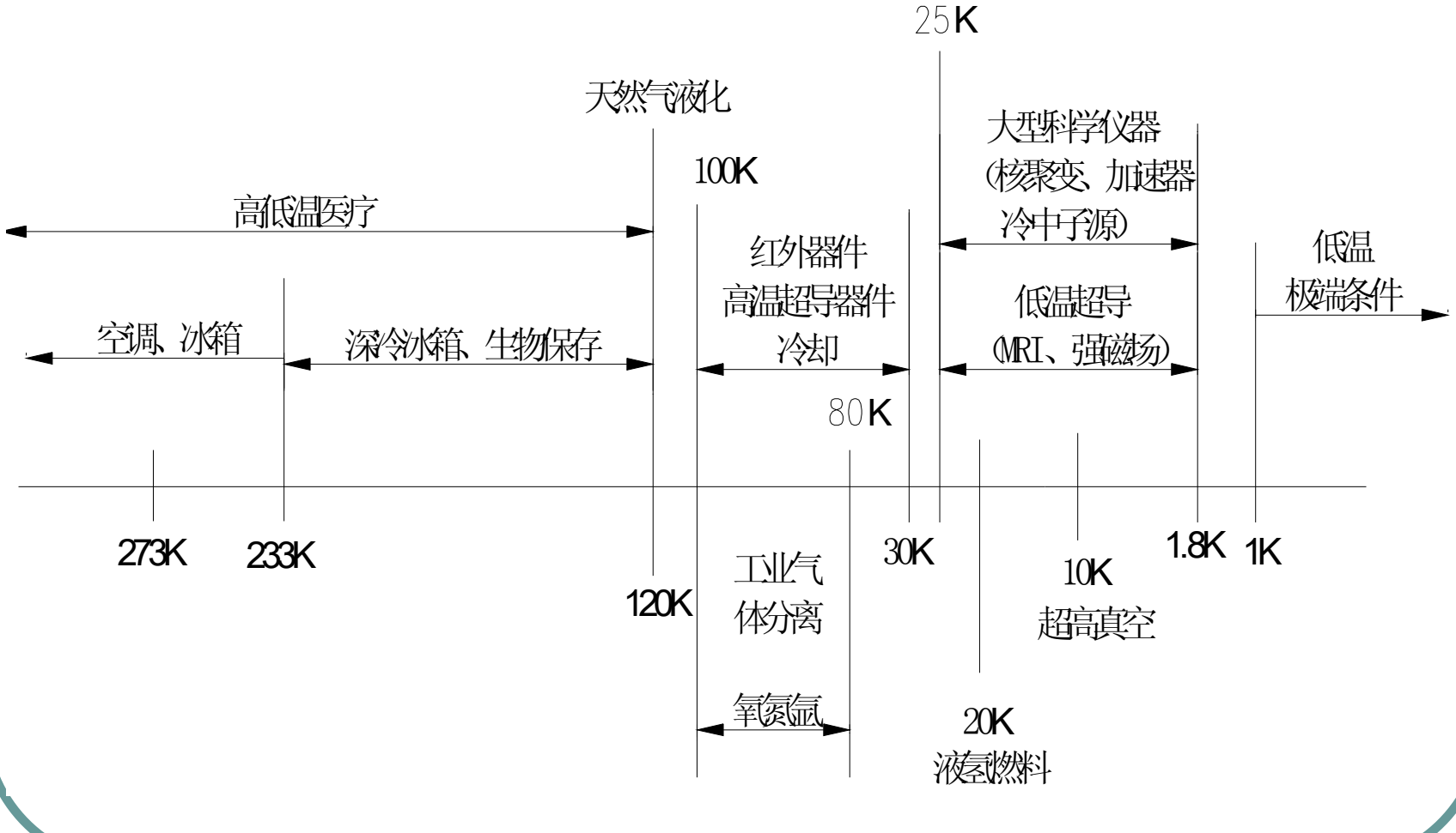 因此可以说,低温技术研究的是从μK~120K温度范围的问题,而制冷技术主要关注的是120K到常温这一温度范围内的问题。
