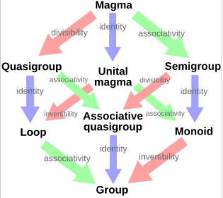 具有单一二元运算的代数结构示例有: