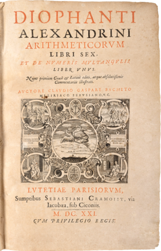 1621 年由巴谢(Bachet)出版的《算术》版本因皮埃尔·德·费马在他副本的页边写下著名的 “最后定理” 而声名鹊起: