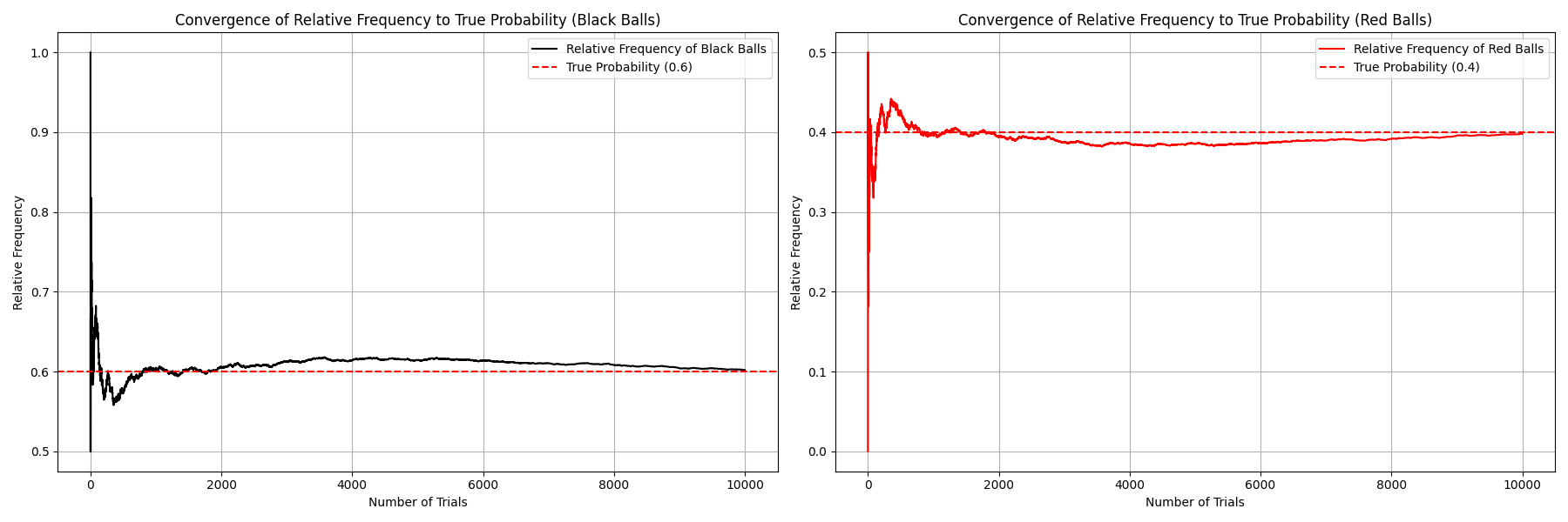大数定律还意味着,在一系列伯努利试验中,成功的经验概率会收敛于理论概率。对于伯努利随机变量,其期望值就是成功的理论概率,而 $n$ 个这样的变量的平均值(假设它们是独立同分布(i.i.d.)的)恰好就是相对频率。