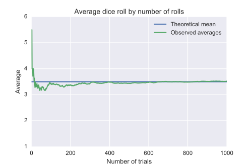 大数定律的重要性在于,它为某些随机事件的平均值提供了长期稳定的保证 \(^\text{[1][2]}\)。例如,一个赌场在某次轮盘赌中可能会亏损,但在大量旋转后,其收益将趋近于一个可预测的百分比。任何玩家的连胜最终也会被游戏设定所 “拉回”。需要注意的是,大数定律(顾名思义)只在观测次数足够大时才适用。并没有任何原则表明少数几次的观测结果就会接近期望值,或者说某种结果的连发会立即被其他结果 “平衡”(参见赌徒谬误)。