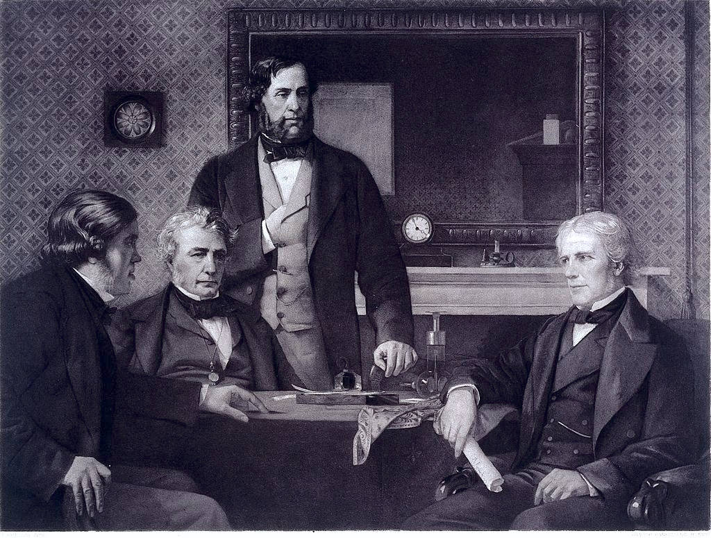 图 3:1857 年,皇家学会的三位会士向法拉第(右)提议总统职务