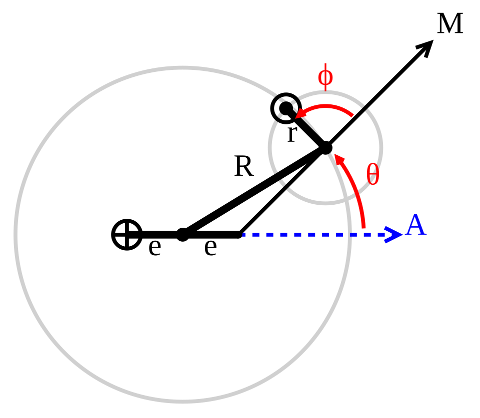 图 10:《至大论》(Almagest)中木星(☉)相对于地球(🜨)经度运动的模型