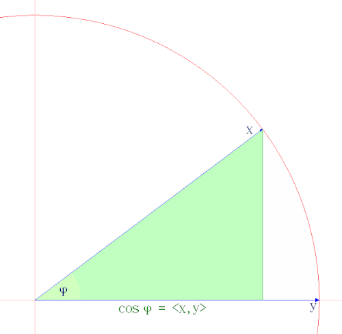 则有: $$ \left| \langle \mathbf{u}, \mathbf{v} \rangle \right| \leq \|\mathbf{u}\| \, \|\mathbf{v}\|~ $$ (柯西–施瓦茨不等式)