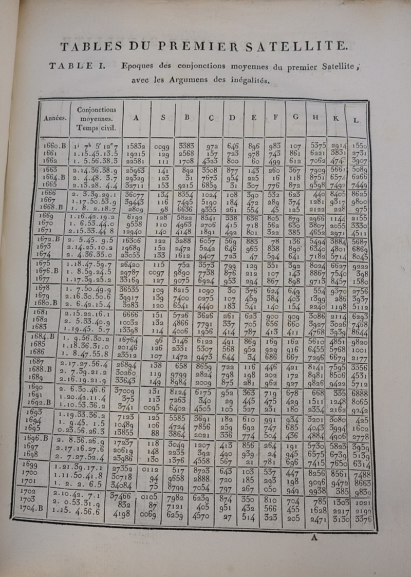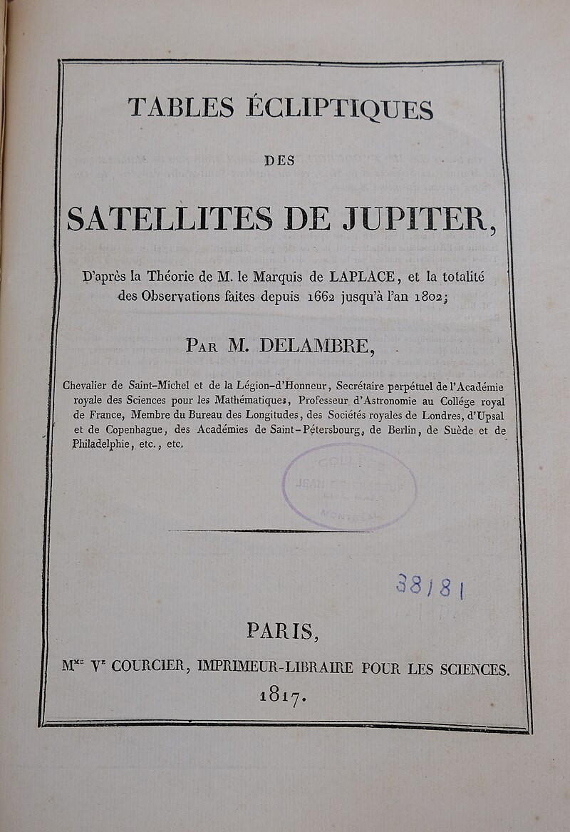 拉普拉斯在 1788 年和 1789 年的两篇论文中进一步发展了这些关于行星运动的定理,但借助拉普拉斯的发现,木星和土星的运动表终于可以更加精确地制作。基于拉普拉斯的理论,德拉布尔(Delambre)计算出了他的天文表。[13]