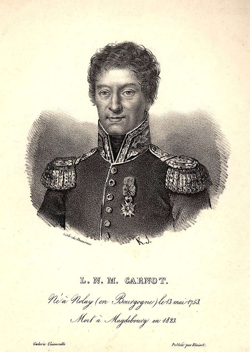 拉扎尔·尼古拉·玛尔格里特·卡诺(Lazare Carnot,法语:[lazaʁ nikɔla maʁɡəʁit kaʁno];1753 年 5 月 13 日 – 1823 年 8 月 2 日)是法国数学家、物理学家、军官、政治家,并在法国大革命期间成为公共安全委员会的主要成员之一。他的军事改革,包括实施全民征兵(levée en masse),在将法国革命军转变为一支有效的战斗力量方面发挥了重要作用。