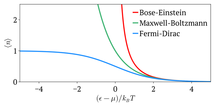 量子粒子要么是玻色子(遵循玻色–爱因斯坦统计),要么是费米子(遵循费米–狄拉克统计,受保利排斥原理的约束)。这两种量子统计在高温和低粒子密度的极限下都会趋近于麦克斯韦–玻尔兹曼统计。