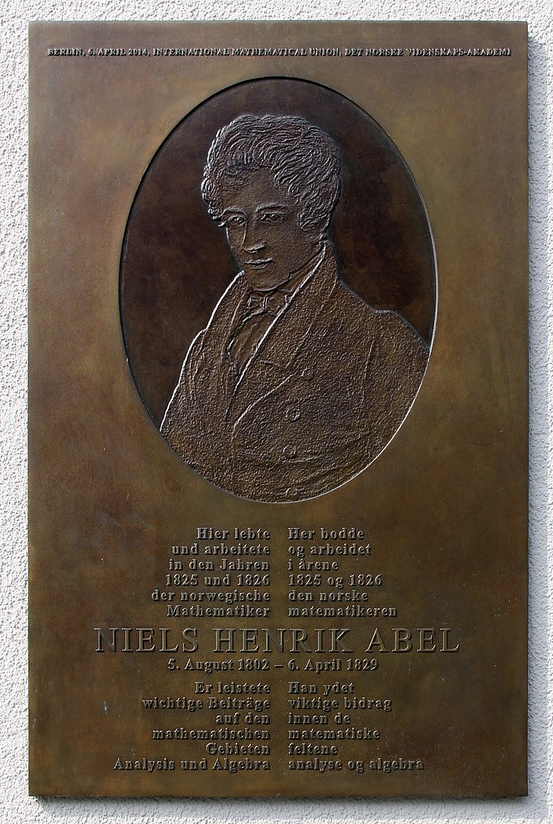 尼尔斯·亨利克·阿贝尔(Niels Henrik Abel,/ˈɑːbəl/ AH-bəl,挪威语发音:[ˌnɪls ˈhɛ̀nːɾɪk ˈɑ̀ːbl̩],1802 年 8 月 5 日-1829 年 4 月 6 日)是挪威著名数学家,在多个数学领域做出了开创性的贡献。\(^\text{[1]}\) 他最著名的成果是第一个完整地证明了一般五次方程无法用根式求解的定理。这个问题曾是当时最重要的未解难题之一,悬而未决长达 250 多年。\(^\text{[2]}\) 此外,他还是椭圆函数领域的创新者,并发现了阿贝尔函数。他是在贫困中取得这些发现的,26 岁时因肺结核早逝。
