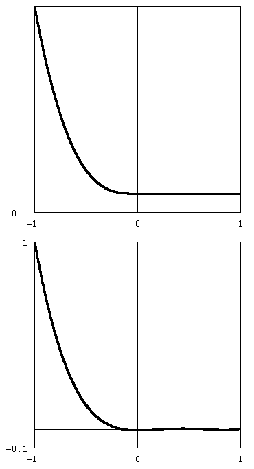 再看一个例子: $$ \begin{aligned} (1 - x^2)^{\alpha} &= -\frac{1}{\sqrt{\pi}}\,\frac{\Gamma\left(\tfrac{1}{2} + \alpha\right)}{\Gamma(\alpha + 1)} + 2^{1 - 2\alpha} \sum_{n=0}^{\infty} (-1)^n \binom{2\alpha}{\alpha - n} T_{2n}(x)\\ &= 2^{-2\alpha} \sum_{n=0}^{\infty} (-1)^n \binom{2\alpha + 1}{\alpha - n} U_{2n}(x) \end{aligned}~ $$