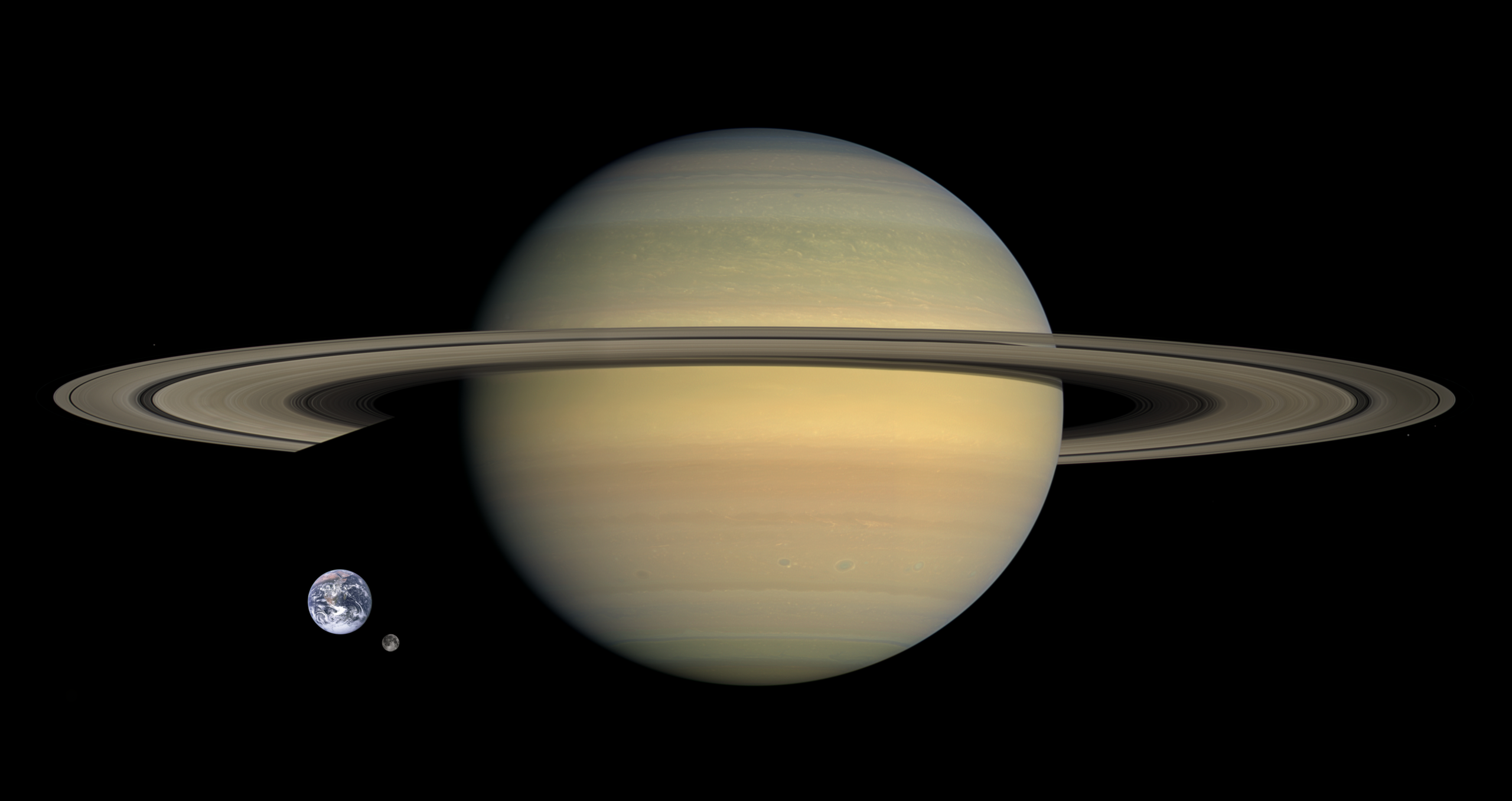 图 1:土星及其显著的行星环,由卡西尼轨道器拍摄 \(^\text{[a]}\)