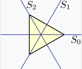 群论(Group Theory)是数学的一个分支,专门研究对称性(symmetry)的概念。例如,可以考虑一个几何图形,如正三角形。有多种操作可以作用于这个三角形,而不改变其形状。例如,可以将其旋转 120°、240° 或 360°,或者可以沿着图中标记为 \(S_0\)、\(S_1\) 或 \(S_2\) 的轴进行反射。每种这样的操作都称为对称变换,而这些对称变换的集合满足某些特定的数学性质,使其成为数学家所称的群(group)。在这个特定的例子中,该群被称为阶为 6 的二面体群(dihedral group of order 6),因为它包含六个元素。一个一般的群可以描述有限个或无限多个对称操作;如果只包含有限个对称操作,则称为有限群(finite group)。[104]