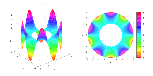 在数学、数理物理以及随机过程理论中,调和函数(harmonic function)是指满足拉普拉斯方程(Laplace's equation)的函数。设 \[ f : U \to \mathbb{R}~ \] 其中 \(U \subseteq \mathbb{R}^n\) 为一个开集,且 \(f\) 是定义在 \(U\) 上的二阶连续可微函数(即 \(f \in C^2(U)\))。若 \(f\) 在 \(U\) 上处处满足 \[ \frac{\partial^2 f}{\partial x_1^2} + \frac{\partial^2 f}{\partial x_2^2} + \cdots + \frac{\partial^2 f}{\partial x_n^2} = 0~ \] 则称 \(f\) 为一个调和函数。 该方程通常记作 \[ \nabla^2 f = 0, \quad \text{或等价地} \quad \Delta f = 0.~ \]