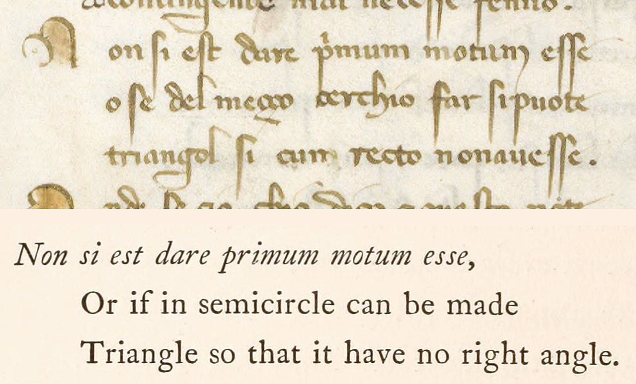 但丁·阿利吉耶里的《神曲·天堂篇》(第 13 歌,101-102 行)在一段演讲中提到了泰勒斯定理。