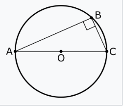 在几何学中,塔勒斯定理指出,如果 \(A\)、\(B\) 和 \(C\) 是圆上的不同点,其中 \(\overline{AC}\) 是直径,则角 \(\angle ABC\) 是直角。塔勒斯定理是内切角定理的一个特例,并作为欧几里得《几何原本》第三卷第 31 命题的一部分被提及和证明。[1] 通常认为该定理归功于米利都的塔勒斯,但有时也归功于毕达哥拉斯。