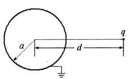 - 点电荷 $q$ 与半径为 $a$ 的接地导体球相距 $d(d>a)$,求: