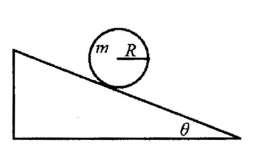 - 一个质量为 $m$,半径为 $R$ 的匀质圆柱体放置在与水平面成 $\theta$ 角的斜面上,如图所示。圆柱体和斜面直接的摩擦因数为 $\mu$,若要让圆柱体无滑动地沿斜面滚下来,问 $\theta$ 角的上限是多少。