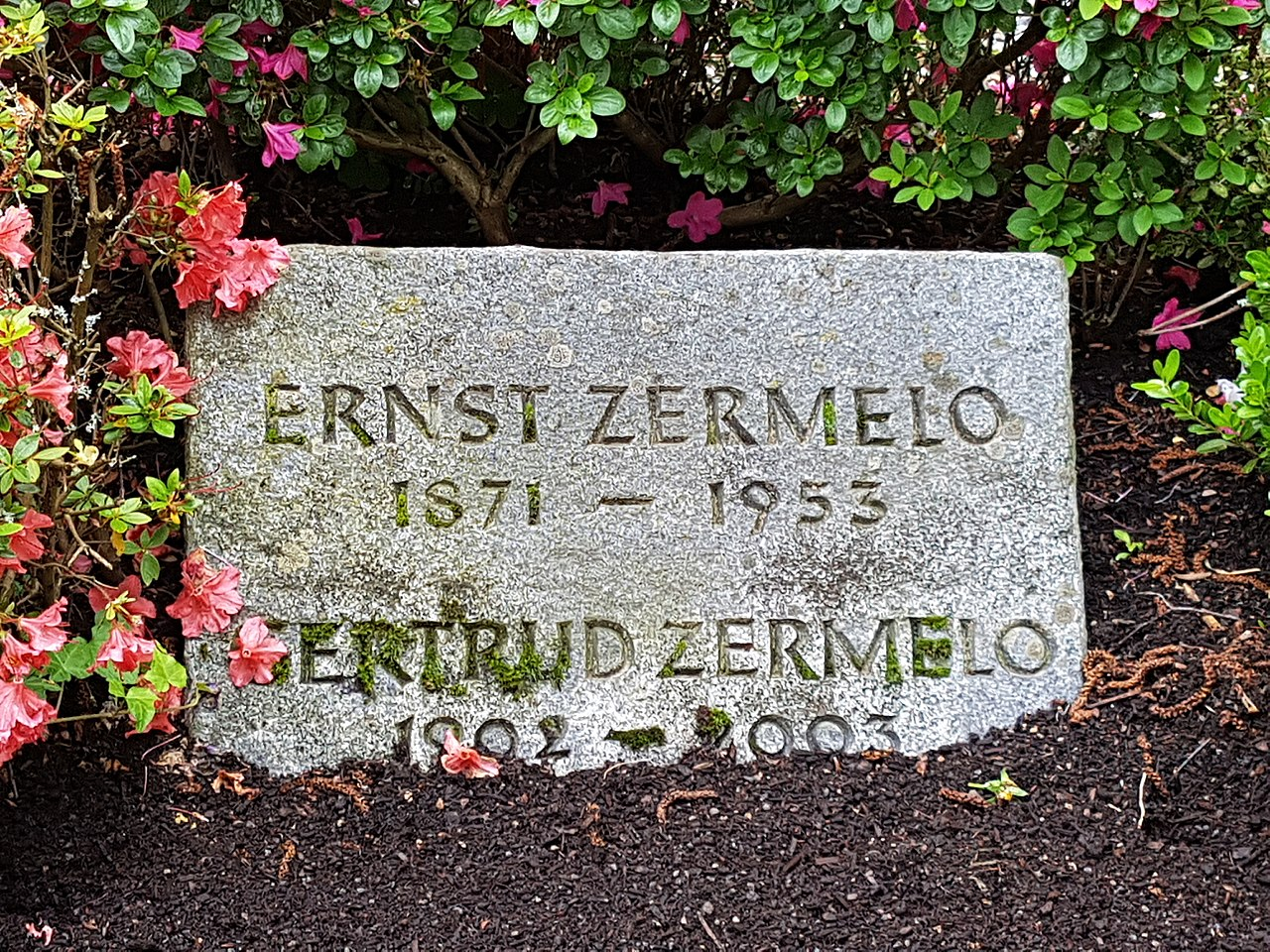 图 3:恩斯特·策梅洛的墓碑,位于弗赖堡(Freiburg im Breisgau)君特塔尔区(Günterstal)的君特塔尔公墓(Friedhof Günterstal)。