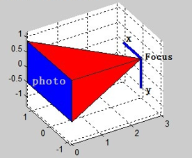 以焦点为原点,光轴方向为 $z$ 轴,图片的右方为 $x$ 轴,下方为 $y$ 轴(注意这是常用的右手系).