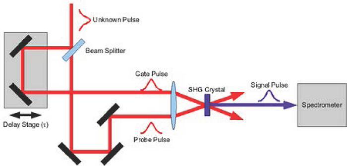 Fig. 1:SHG FROG 的光路(图片来自 WikiPedia)