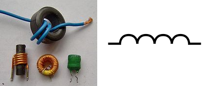 Fig. 1:左:各种电感器,右:在电路图中的符号