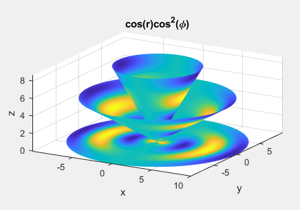 title('cos(r)cos^2(\phi)');