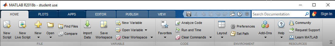 Matlab 的编程界面(fig. 1 )属于集成开发环境(IDE/Integrated Develop Environment),简而言之就是一切与 Matlab 编程有关的工作都可以在该界面完成1.以下介绍界面中常用的窗口.要选择显示的窗口,可在 Home 菜单中点击 Layout 按钮,并在 Show 下面勾选需要的窗口.
