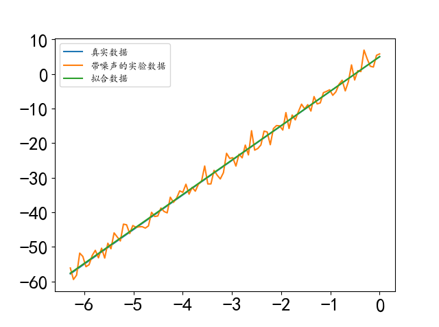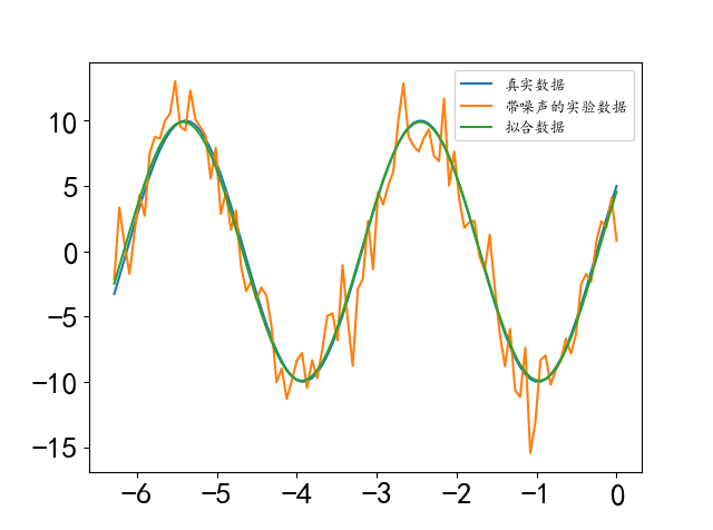 我们看到拟合参数虽然和真实参数完全不同,但是由于正弦函数具有周期性,实际上拟合参数得到的函数和真实参数对应的函数是一致的.
