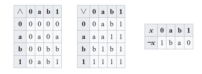 - Huntington 方程:$n(n(x) + y) + n(n(x) + n(y)) = x$
