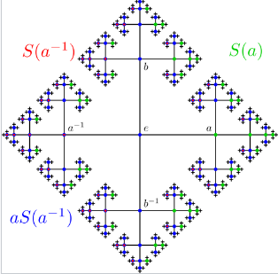 这正是证明的核心。例如,在集合 \( aS(a^{-1}) \) 中,可能有一个字符串 \( aa^{-1}b \),由于规则要求 \( a \) 不能出现在 \( a^{-1} \) 旁边,因此它简化为字符串 \( b \)。类似地,\( aS(a^{-1}) \) 包含所有以 \( a^{-1} \) 开头的字符串(例如,字符串 \( aa^{-1}a^{-1} \) 被简化为 \( a^{-1} \))。通过这种方式,\( aS(a^{-1}) \) 包含所有以 \( b \)、\( b^{-1} \) 和 \( a^{-1} \) 开头的字符串,以及空字符串 \( e \)。