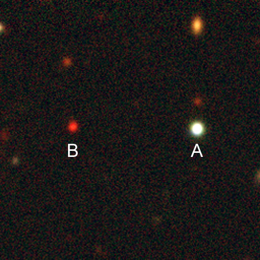 图 3:较小的天体是葛利泽 229B(Gliese 229B),其质量约为木星的 20 至 50 倍,绕恒星葛利泽 229 运行。它位于天兔座,距离地球约 19 光年。