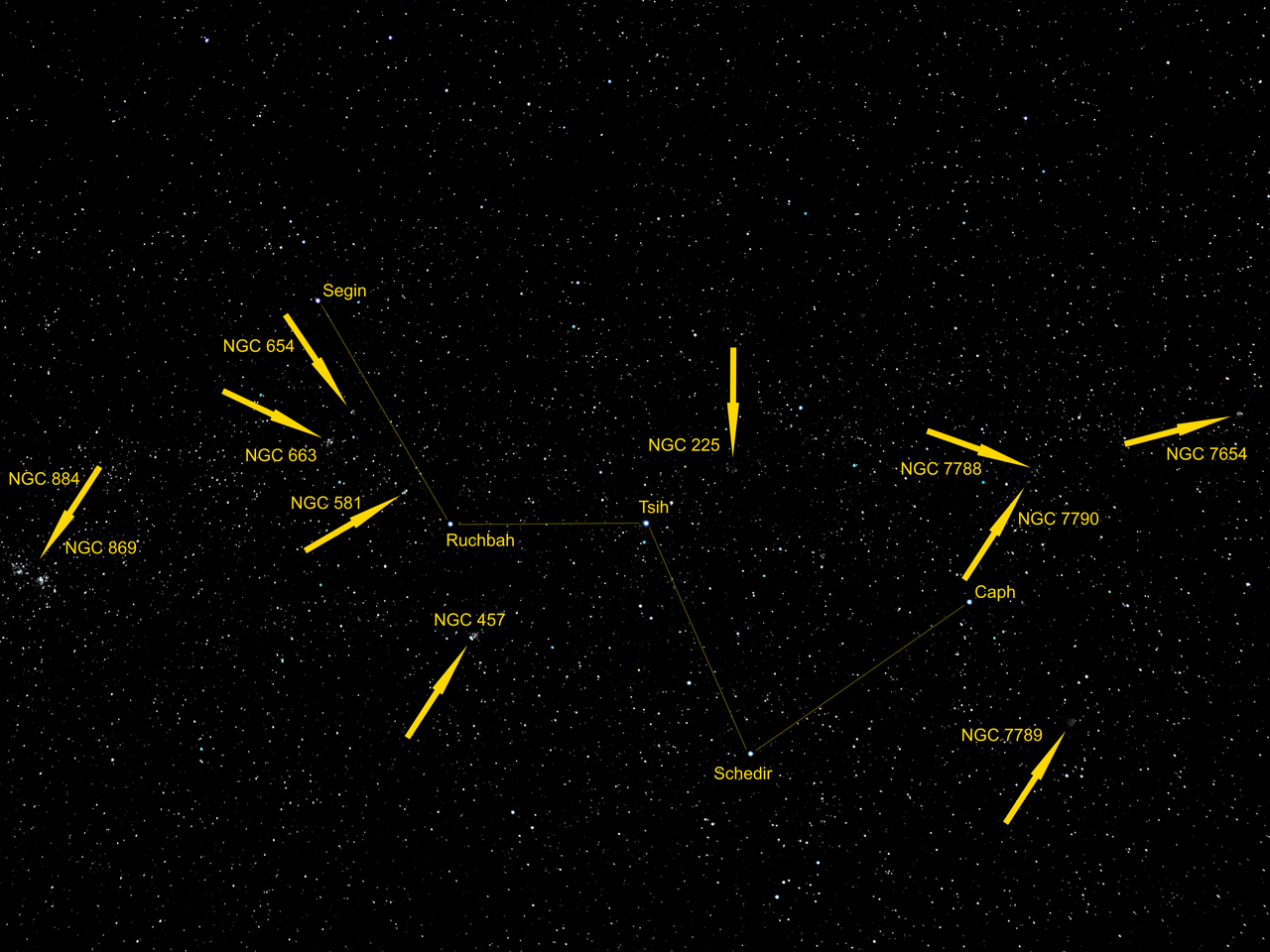 银河系中一段十分丰富的区域贯穿仙后座,从英仙座方向延伸至天鹅座,包含大量疏散星团、年轻而明亮的银河盘恒星以及各类星云。