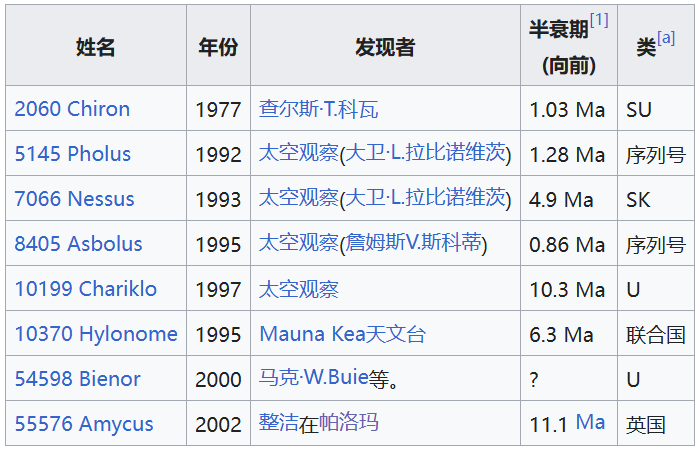6. 著名的半人马天体