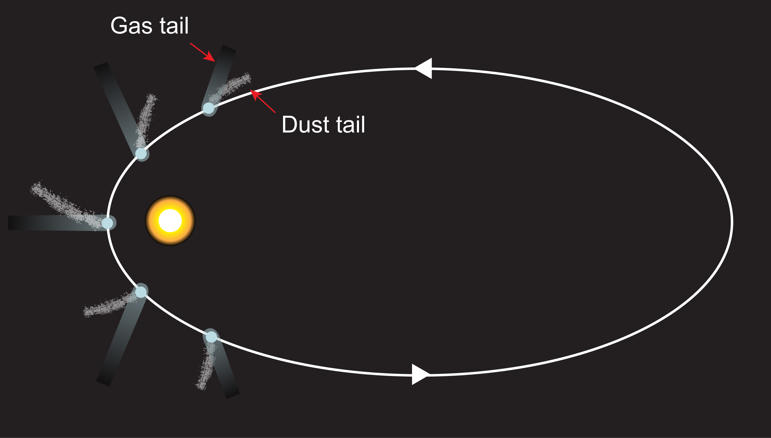 图 10:彗星在接近太阳轨道时彗尾的典型指向方向