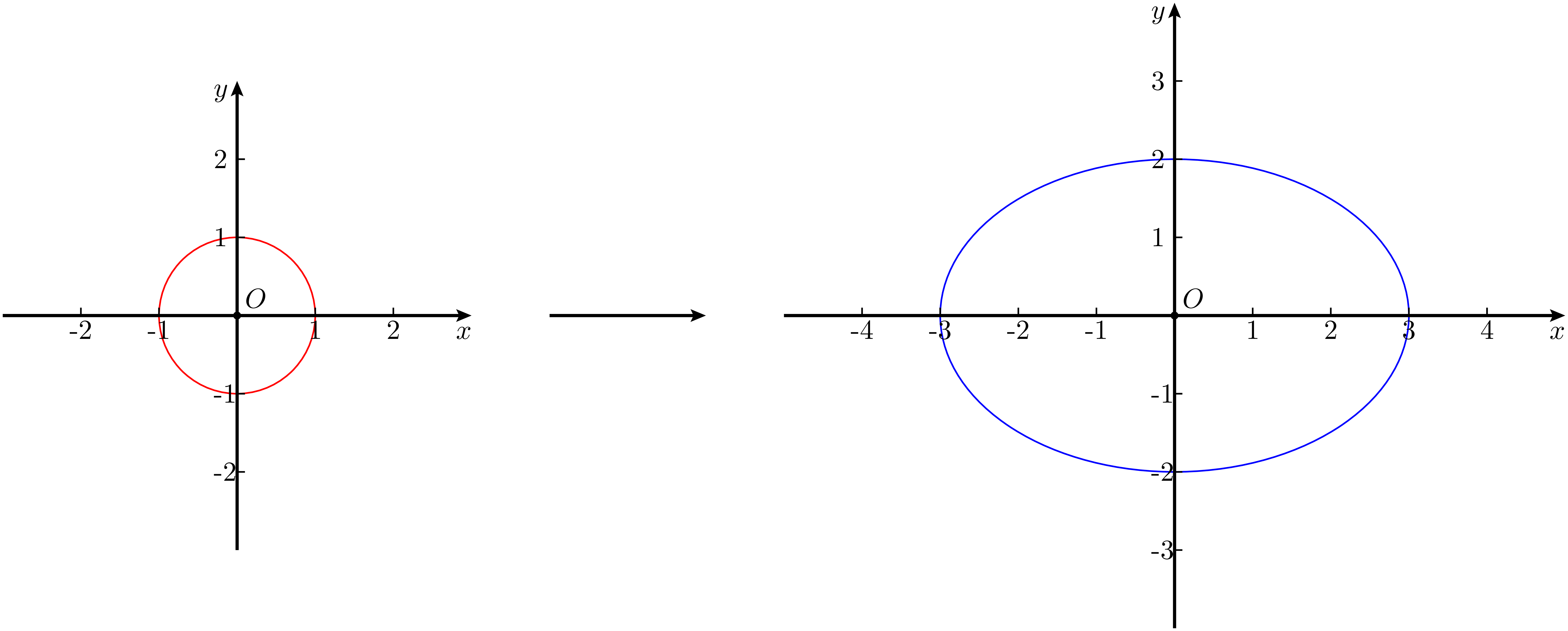 先来研究水杯杯口那种略微压扁的圆形轮廓。下面将从单位圆出发,只从几何变化的角度入手,研究其经过轴向放缩后所形成的形状,暂且称其为 “压扁的圆”。