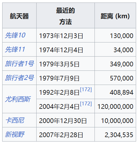 自 1973 年起,多艘航天器进行了行星飞掠机动,使其进入木星的可观测范围。先驱者号任务首次获得了木星大气及其多颗卫星的近距离图像。它们发现木星附近的辐射场远比预期强,但两艘探测器都成功在该恶劣环境中生存下来。这些航天器的轨道被用来进一步精确木星系统的质量估计。通过行星造成的无线电掩星现象,使得对木星直径及两极扁率的测量更加精确 \(^\text{[59]:47^\text{}[173]}\)。
