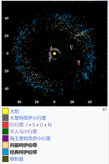 - 小行星中心:外太阳系分布图, 用于展示柯伊伯空隙