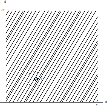 下面给出一个具有不可数多个元素但在某种拓扑下并非李群的例子。考虑如下的群: $$ H = \left\{\begin{pmatrix} e^{2\pi i \theta} & 0 \\ 0 & e^{2\pi i a \theta} \end{pmatrix} : \theta \in \mathbb{R} \right\} \subset \mathbb{T}^2 = \left\{\begin{pmatrix} e^{2\pi i \theta} & 0 \\ 0 & e^{2\pi i \phi} \end{pmatrix} : \theta, \phi \in \mathbb{R} \right\},~ $$ 其中 $a \in \mathbb{R} \setminus \mathbb{Q}$ 是一个固定的无理数。该群 $H$ 是环面 $\mathbb{T}^2$ 的一个子群,但在子空间拓扑下,它并不是一个李群。\(^\text{[9]}\) 原因是:如果我们取 $H$ 中某一点 $h$ 的任意一个小邻域 $U$,那么 $U$ 内的 $H$ 的部分是不连通的。事实上,群 $H$ 在环面上不断缠绕,但永远不会回到螺旋上的先前一点,从而在 $\mathbb{T}^2$ 中形成一个稠密子群。