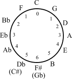 在五度循环中出现的 12 周期性使得初等群论在音乐集合论中得到应用。变换理论则将音乐中的各种变换建模为数学群的元素。