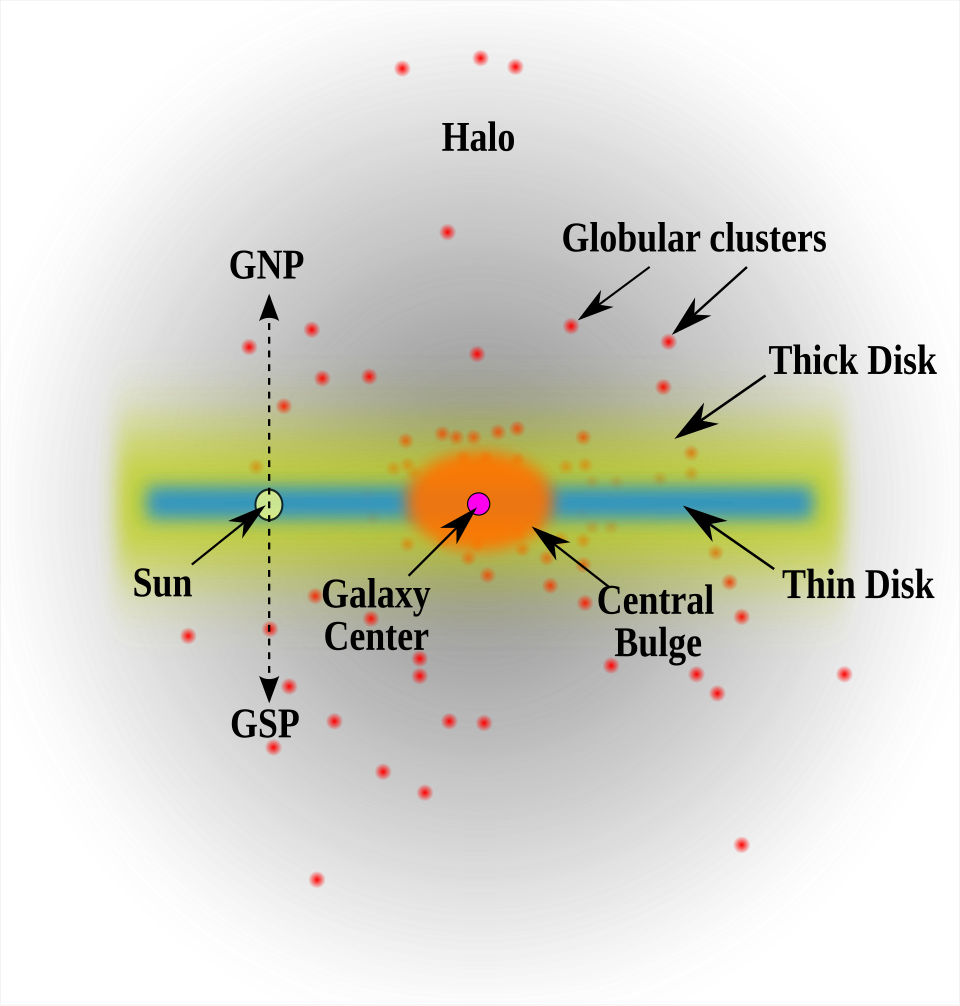 图 3:银河系。第二族恒星位于银河核球以及球状星团中。