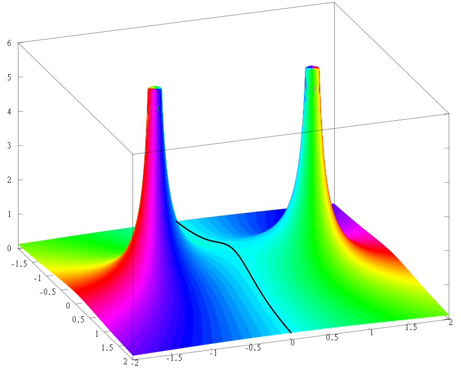 函数 \[ f : \mathbb{R} \to \mathbb{R},~ \] \[ f(x) = \frac{1}{1 + x^2}~ \] 是实值解析的,也就是说,它在局部上由其泰勒级数确定。该函数在上面已绘制,旨在说明某些初等函数在展开中心的邻域内不能通过泰勒多项式进行近似,尤其是当邻域过大时。这种行为在复分析框架中容易理解。具体来说,函数 \( f \) 可以扩展为一个有理函数 \[ f : \mathbb{C} \cup \{\infty\} \to \mathbb{C} \cup \{\infty\},~ \] \[ f(z) = \frac{1}{1 + z^2}~ \] 在紧化的复平面上。它在 \( z = i \) 和 \( z = -i \) 处有简单极点,并且在其他地方是解析的。现在,它以 \( z_0 \) 为中心的泰勒级数在任何 \( B(z_0, r) \) 上收敛,其中 \( r < |z - z_0| \),且相同的泰勒级数在 \( z \in \mathbf{C} \) 处收敛。因此,\( f \) 在 \( 0 \) 处的泰勒级数在 \( B(0, 1) \) 上收敛,但对于任何 \( z \in \mathbf{C} \) 且 \( |z| > 1 \),它都不收敛,因为存在极点 \( i \) 和 \( -i \)。出于相同的原因,\( f \) 在 \( 1 \) 处的泰勒级数在 \( B(1, \sqrt{2}) \) 上收敛,但对于任何 \( z \in \mathbf{C} \) 且 \( |z - 1| > \sqrt{2} \),它也不收敛。