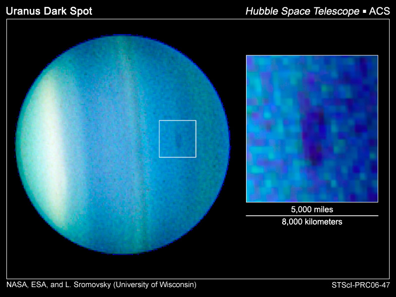 图 15:天王星上观测到的第一个暗斑。图像由哈勃太空望远镜 ACS 于 2006 年获取。