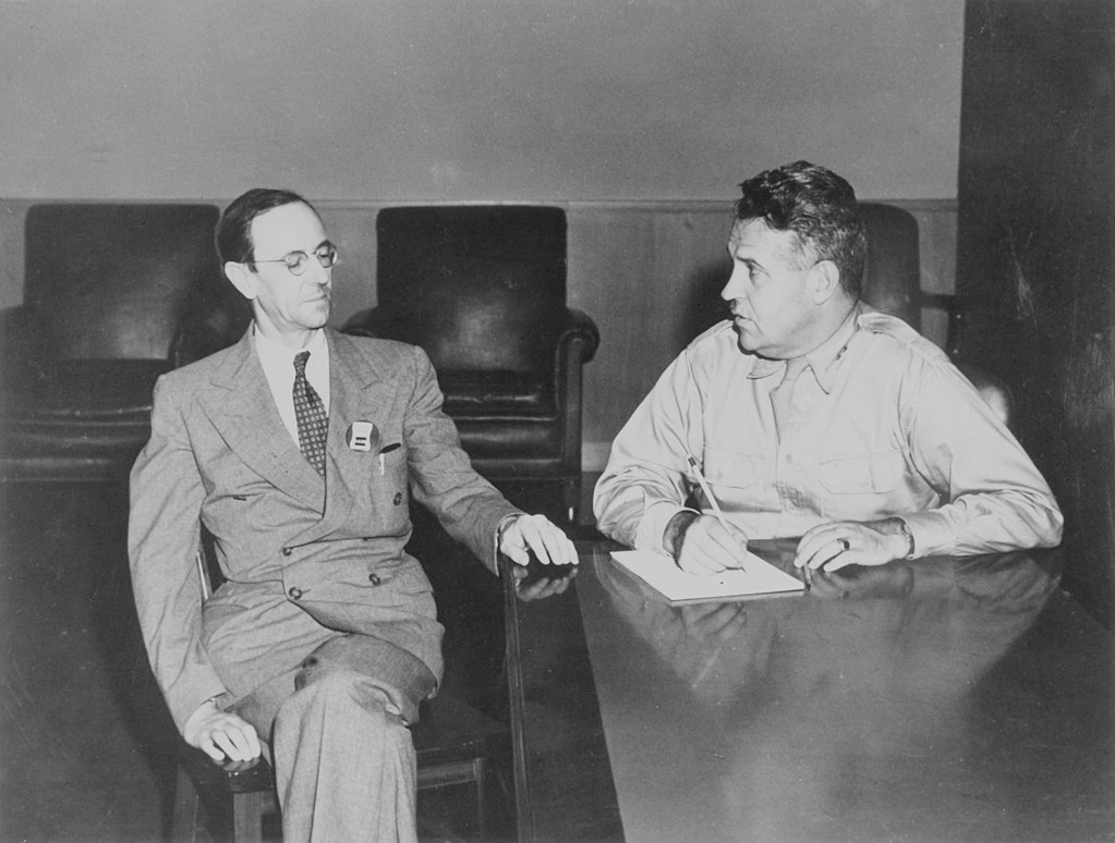 查德威克认为,美国人在技术上并不需要英国的帮助,但英国的参与仍可能对项目尽早且成功完成有所助益。他与曼哈顿计划主管莱斯利·格罗夫斯少将紧密合作,尽一切努力支持该项目的推进。\(^\text{[96]}\) 同时,他还尽力将英国科学家安置到项目的各个环节,以促进战后英国核武器计划的发展,这也是查德威克一直坚定支持的事业。格罗夫斯通过查德威克提出的特定科学家调动请求,通常会遭到该科学家所在公司、部门或大学的立即拒绝,但最终都因 “管道合金” 项目的优先级而得以解决。\(^\text{[97]}\) 因此,英国团队对曼哈顿计划的成功起到了关键作用。\(^\text{[98]}\)